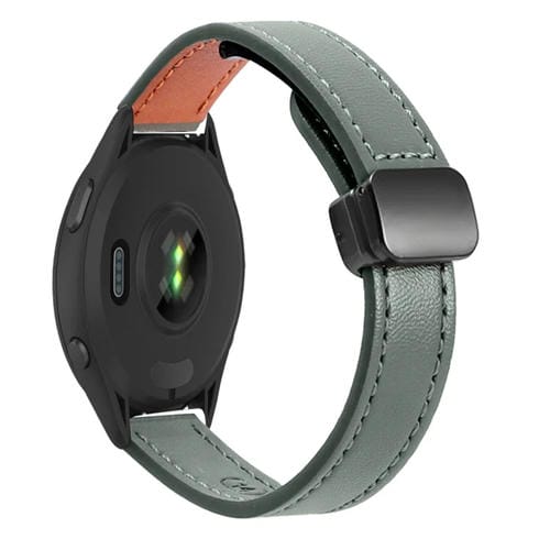 Correa de Reloj Cuero Microfibra con Hebilla Magnética 22mm para Garmin Forerunner 265 Music (Verde Aguacate)