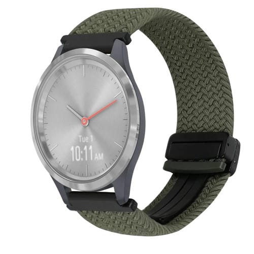 Correa de Reloj trenzada Garmin Vivomove 3S 18mm con hebilla magnética (Verde Oliva)