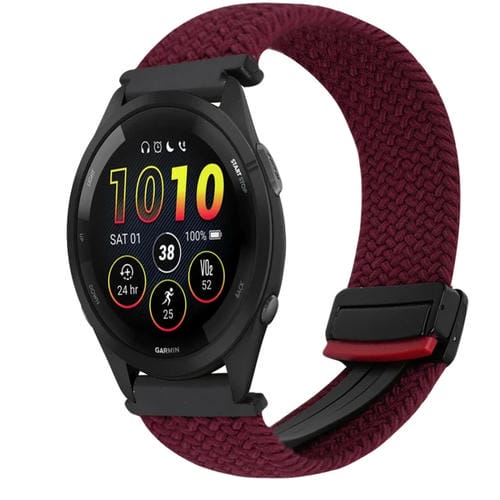 Correa de Reloj Trenzada Garmin Forerunner 265 Music 22mm con Hebilla Magnética (Rojo Vino)