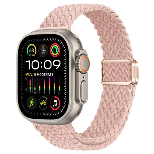 Correa de Reloj Trenzada de Nailon con Hebilla Magnética para Apple Watch Ultra 2 49mm (Crema, Rosa y Arena)