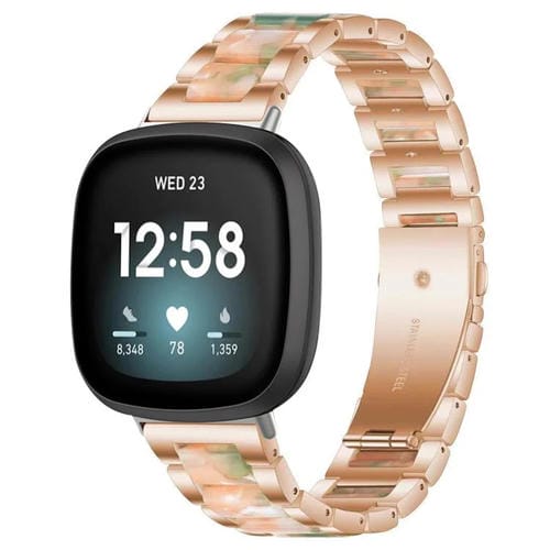 Correa de resina metálica con tres cuentas para Fitbit Versa 4/3/Sense 2/Sense xDfind (oro rosa y verde)