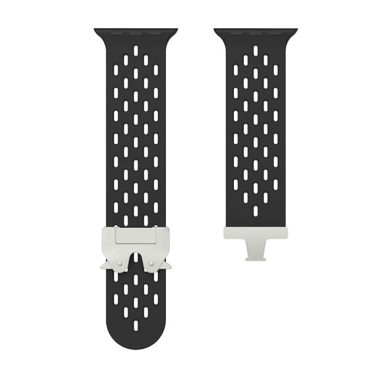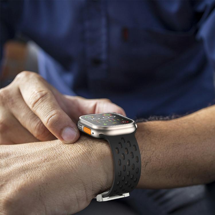 Correa de silicona con hebilla de paraguas plateada Kalebol Mesh para Apple Watch de 46 mm, 49 mm, 45 mm y 44 mm (negra)