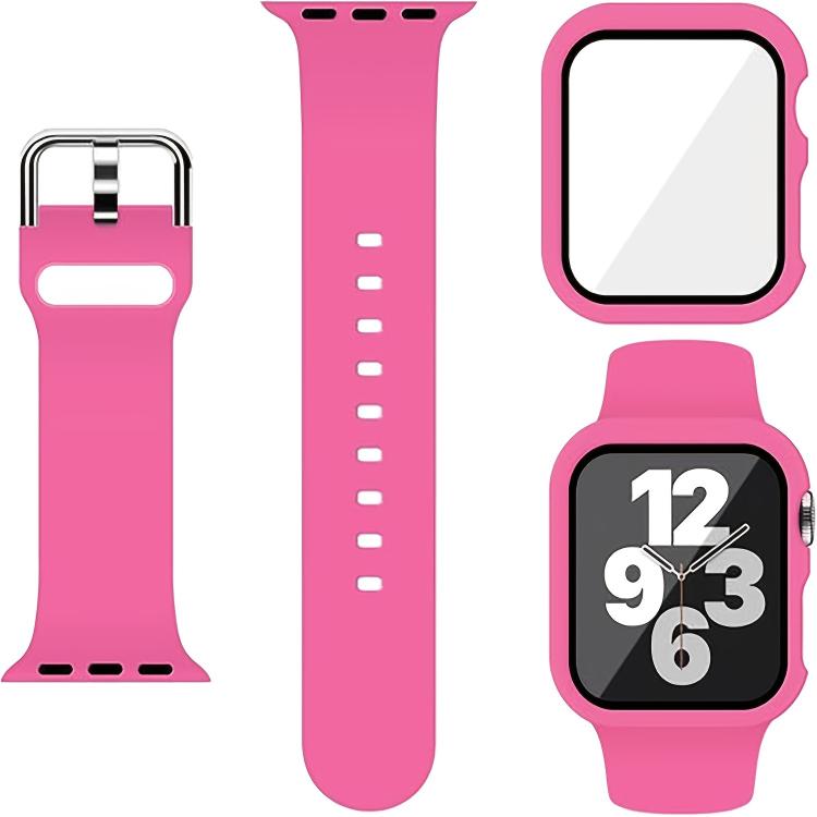Correa de silicona con hebilla de pasador para Apple Watch Series 10/11 de 46 mm con carcasa de PC integrada (rosa)