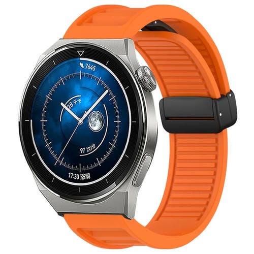 Correa de Silicona con Hebilla Magnética Plegable para Huawei Watch GT3 Pro 46mm 22mm (Naranja)