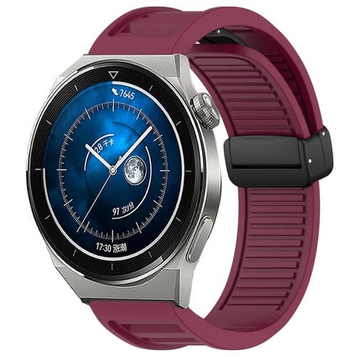 Correa de Silicona con Hebilla Magnética Plegable para Huawei Watch GT3 Pro 46mm y 22mm (Rojo Vino)