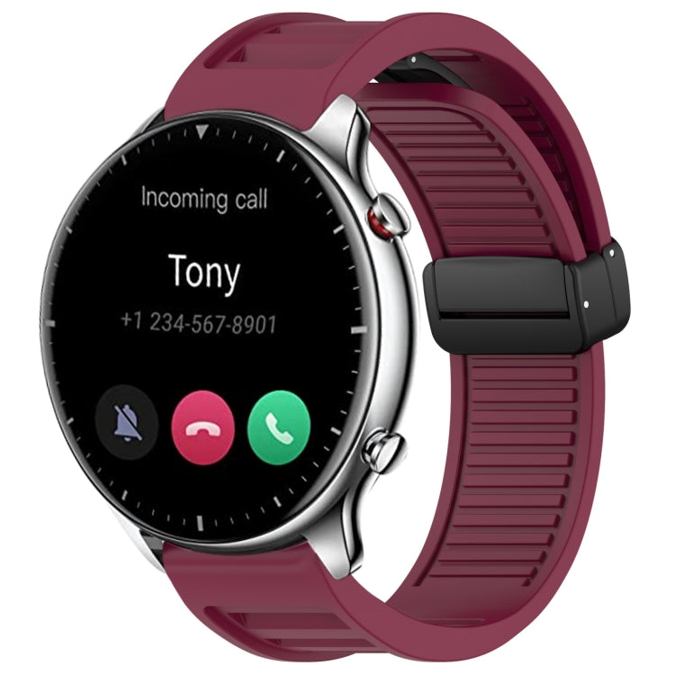 Correa de Silicona con Hebilla Magnética Plegable para Reloj Amazfit GTR 2 22mm (Rojo Vino)