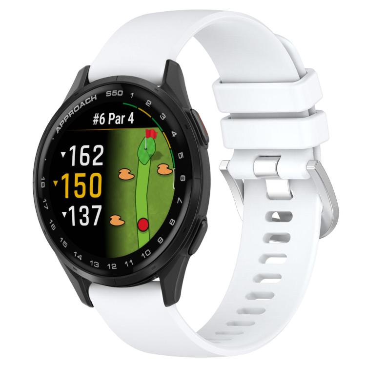 Correa de silicona con hebilla plateada brillante para Garmin Approach S50 de 20 mm (blanca)