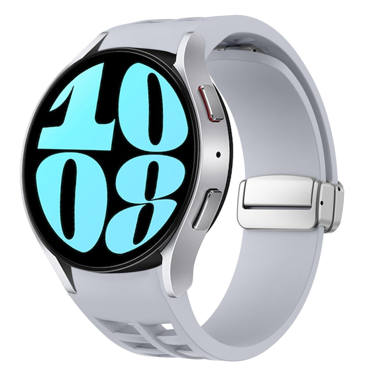 Correa de Silicona Samsung Galaxy Watch 6 40/44mm con Hebilla Plateada y Cierre Magnético (Gris Claro)