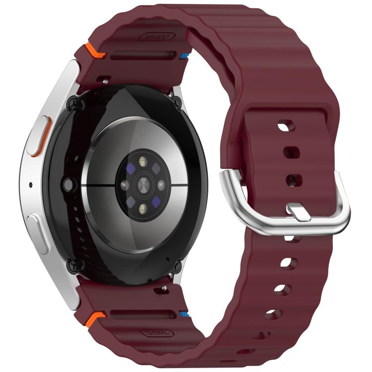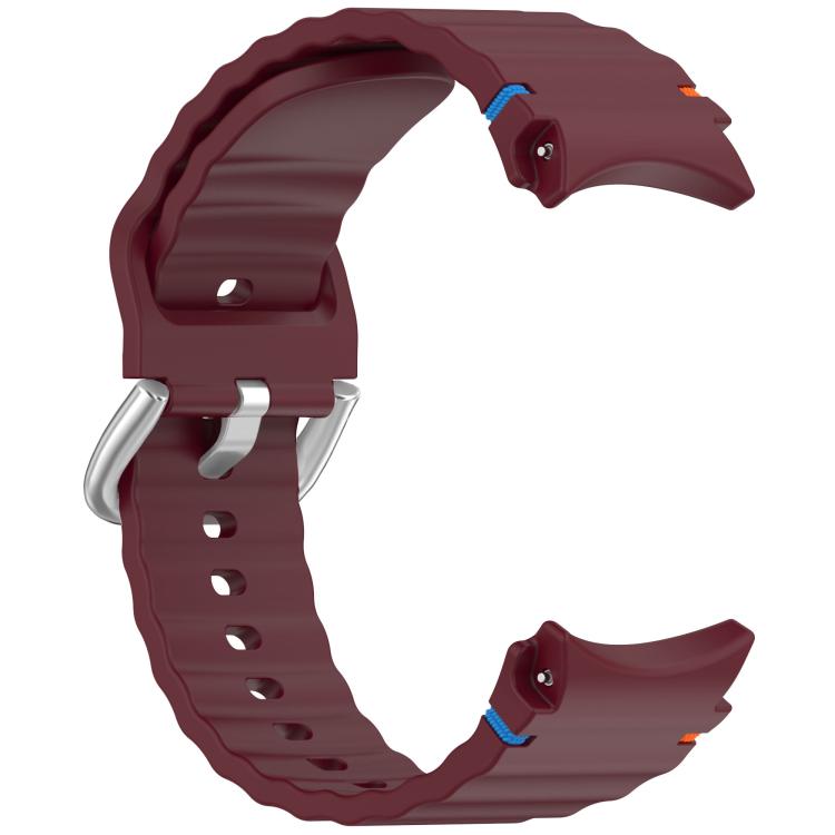 Correa de silicona con hebilla plateada y costuras onduladas para Samsung Galaxy Watch 7 de 40/44 mm (rojo vino)
