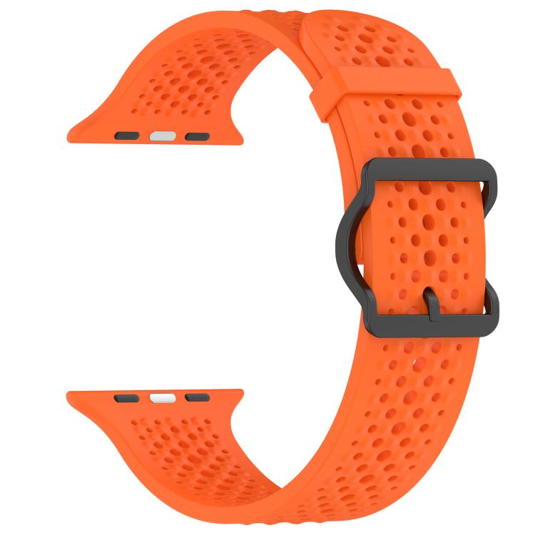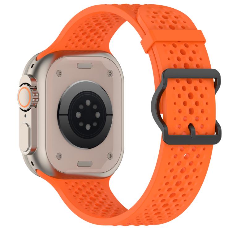 Correa de silicona con orificios transpirables para Apple Watch de 46 mm, 49 mm, 45 mm y 44 mm (naranja)