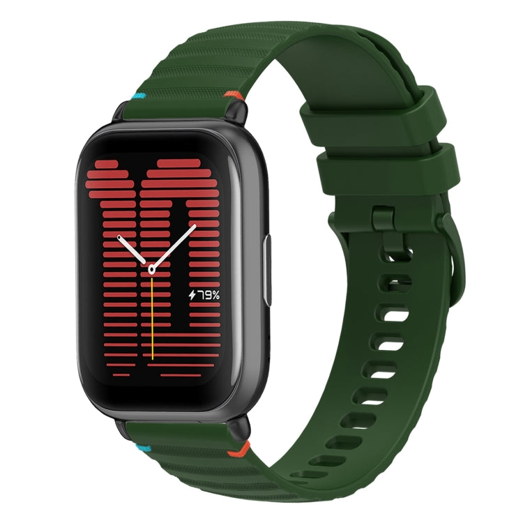 Correa de Silicona para Reloj Amazfit Active 20mm con Puntadas Onduladas y Puntos (Verde Militar)