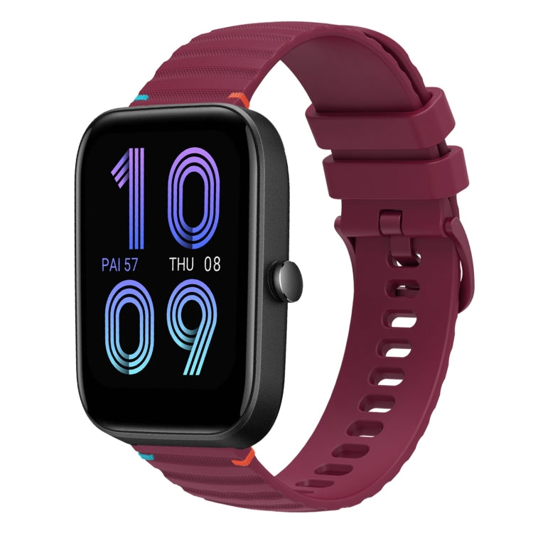 Correa de Silicona Amazfit Bip 3 20mm con Puntadas Onduladas y Puntos (Rojo Vino)
