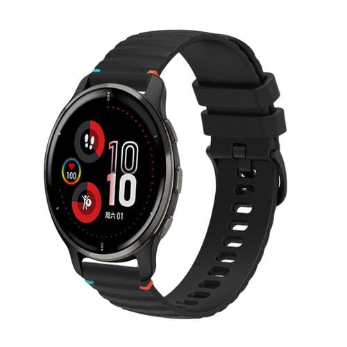 Correa de Silicona con Puntadas Onduladas y Puntos para Reloj Garmin Venu 2 Plus 20mm (Negra)
