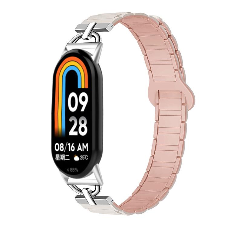 Correa de silicona magnética con tres cuentas en forma de D para Xiaomi Smart Band 10/9/8 (rosa arena estrellada)