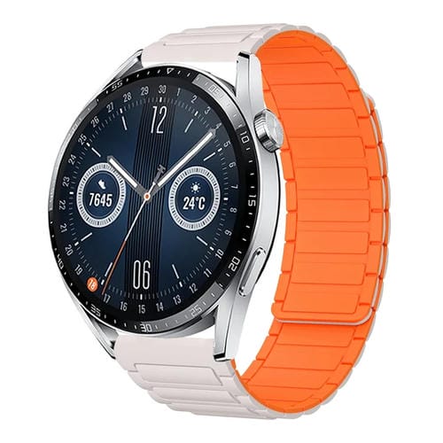 Correa de Silicona Magnética En Forma de I para Huawei Watch GT 3 46mm y 22mm (Luz de Estrellas y Naranja)
