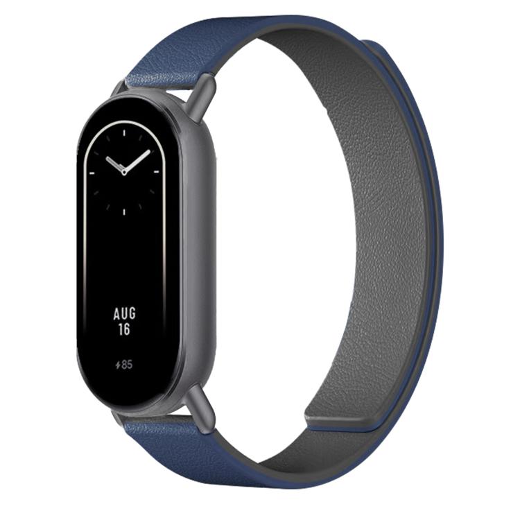 Correa de silicona magnética suave con textura de lichi para Xiaomi Smart Band 10/9/8 (azul grisáceo)