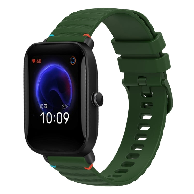 Correa de Silicona Amazfit Pop 20mm con Puntadas Onduladas y Puntos (Verde Militar)