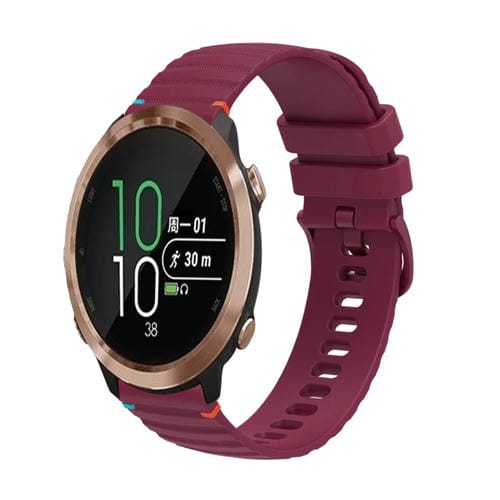 Correa de Silicona Garmin Forerunner 645 Music 20mm con Puntadas Onduladas (Rojo Vino)