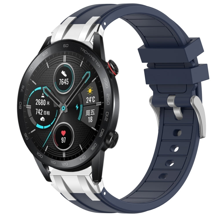 Correa de Silicona para Reloj Honor Magic Watch 2 46mm 22mm Hebilla Plateada (Azul Marino)