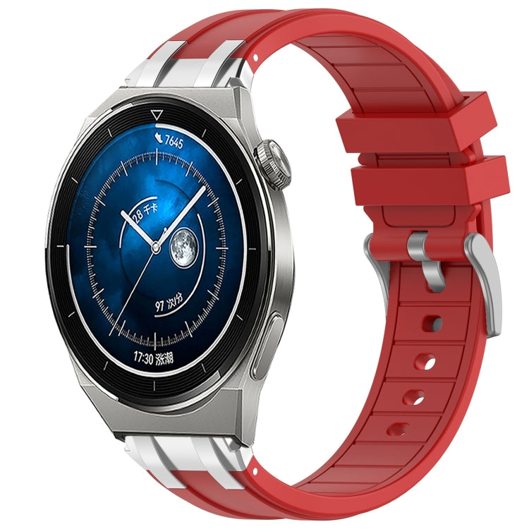 Correa de Silicona Huawei Watch GT3 Pro 46mm 22mm Hebilla Plateada Liberación Rápida (Roja)