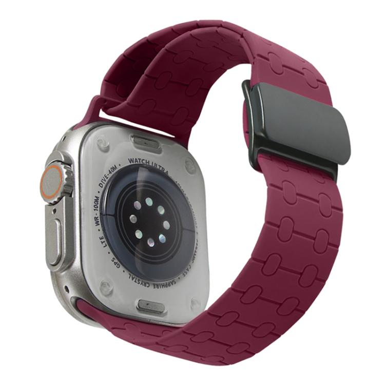 Correa de silicona transpirable con hebilla magnética para Apple Watch de 42 mm, 41 mm, 40 mm y 38 mm (rojo vino)