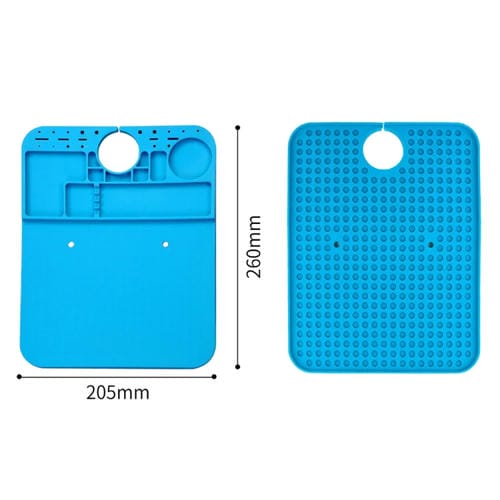 La estera de trabajo de aislamiento de Silicona para microscopio está diseñada específicamente para facilitar la Reparación de Teléfonos Móviles y otros dispositivos electrónicos. Con unas dimensiones de 20x26 cm, esta alfombra ofrece un área de trabajo óptima para tareas de soldadura y desmontaje bajo microscopio, proporcionando un entorno limpio y ordenado. Fabricada en Silicona de alta densidad con recuperación de memoria, es lavable, plegable y resistente a altas temperaturas, lo que garantiza protección térmica durante procesos de soldadura. Su diseño antiestático y las ranuras para posicionamiento de tornillos y Accesorios permiten una manipulación precisa y segura de Componentes electrónicos. Es compatible con una amplia variedad de dispositivos electrónicos como Smartphones, Laptops y Placas de circuitos, facilitando el trabajo de Técnicos y usuarios que reparan por cuenta propia.