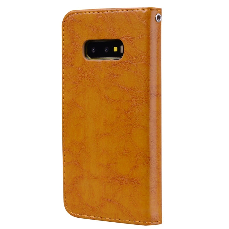 Estuche de Cuero Galaxy S10 E Tapa Horizontal Soporte Ranuras Tarjetas Billetera (Marrón)