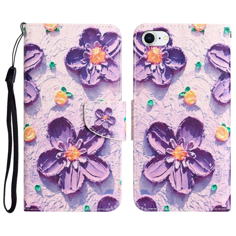 Estuche de Teléfono Cuero iPhone 7/8 Dibujo Coloreado Flor (Púrpura)