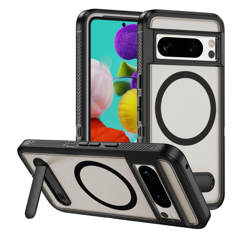 Estuche Híbrido TPU y PC con Soporte Magsafe para Google Pixel 8 Pro (Negro Transparente)