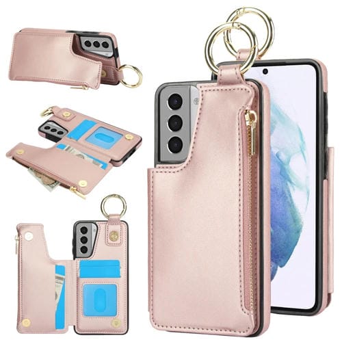 Estuche para Teléfono Samsung Galaxy S21 5G Rfld con Cremallera y Anillo de Doble Hebilla Antirrobo (Oro Rosa)