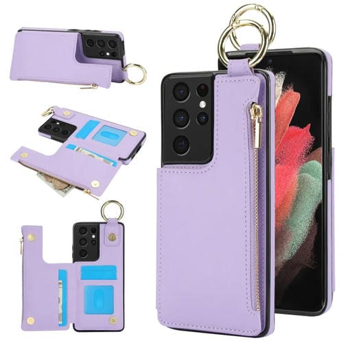Estuche para Teléfono Samsung Galaxy S21 Ultra 5G Rfld con Cremallera y Anillo de Doble Hebilla Antirrobo (Morado)