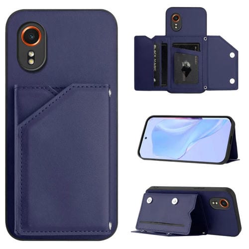 Estuche para Teléfono Samsung Galaxy Xcover 7 con 4 Ranuras para Tarjetas y Correa para Muñeca (Azul)