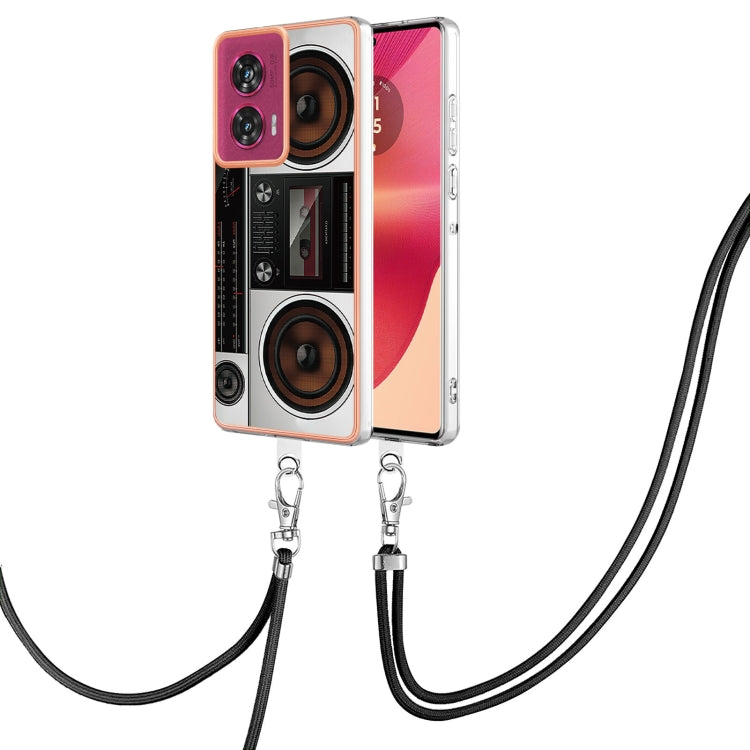 Estuche para Teléfono Motorola Edge 50 Fusion con IMD Doble Cara, Galvanoplastia y Cordón (Radio Retro)