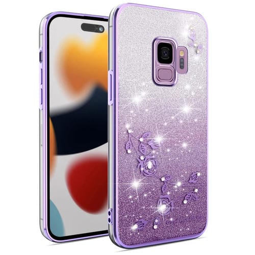 Estuche para Teléfono Samsung Galaxy S9 Diseño Flores Purpurina Degradada (Morado)