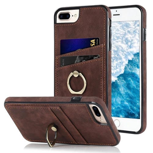Estuche para Teléfono Cuero Parche Vintage Soporte Anillo iPhone 7 Plus / 8 Plus (Marrón)