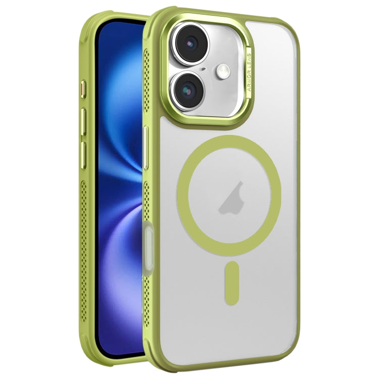Estuche para Teléfono Magsafe iPhone 16 Marco de Lente Metal Esmerilado Sensación de Piel Enfriamiento Lateral (Verde)