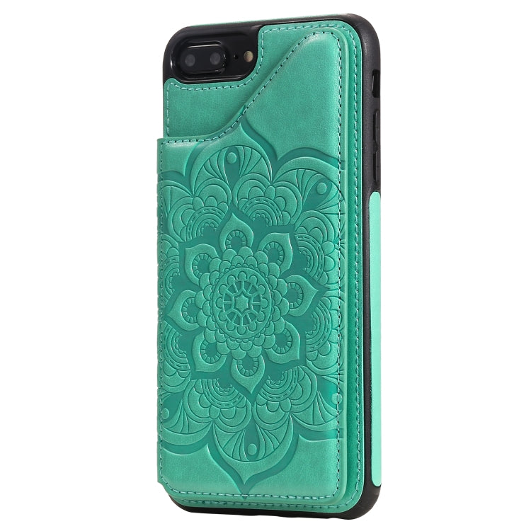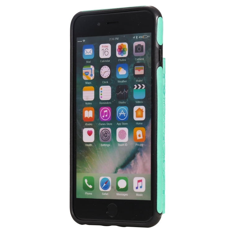 Estuche Protector iPhone 8 Plus 7 Plus Patrón Flores Soporte Ranuras Tarjetas Marco Fotos (Green)