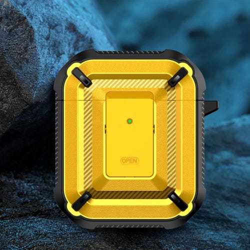 Estuche Protector Auriculares Airpods 1/2 Textura Diamante Interruptor Gancho (Amarillo)