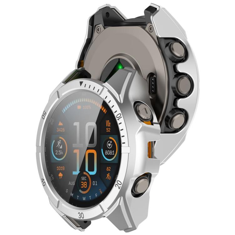 Estuche protector de PC integrado con película templada para Garmin Tactix 8 Solar de 51 mm (plateado y negro)