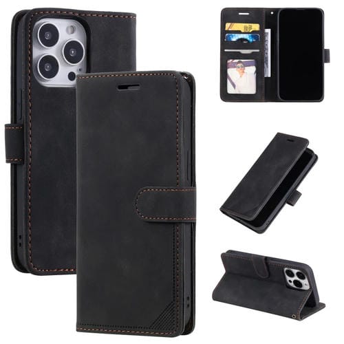 Funda para teléfono iPhone 13 Pro de cuero Anti-Robo (Negro)