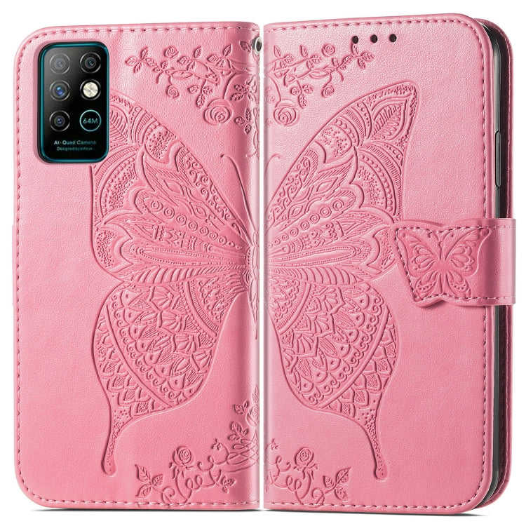Funda de Cuero Flores de Amor Mariposa para Infinix Nota 8 con Soporte y Ranuras (Rosa)