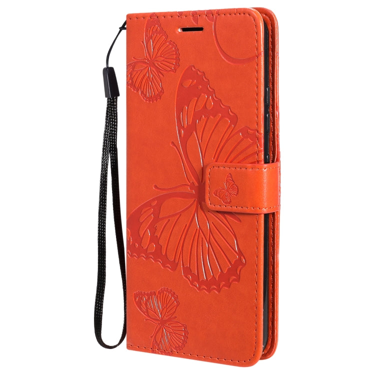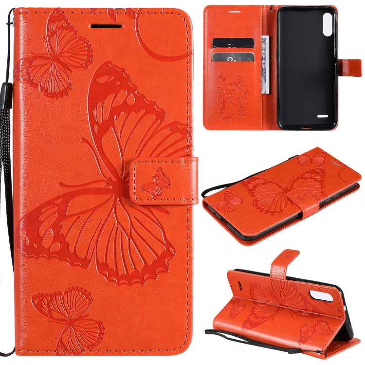 Funda de cuero con tapa horizontal para LG K22 / K22 Plus con patrón 3D mariposas, tarjetero y billetera (Naranja)