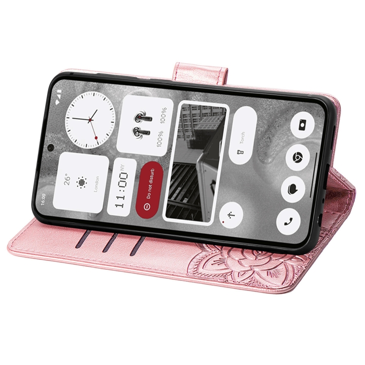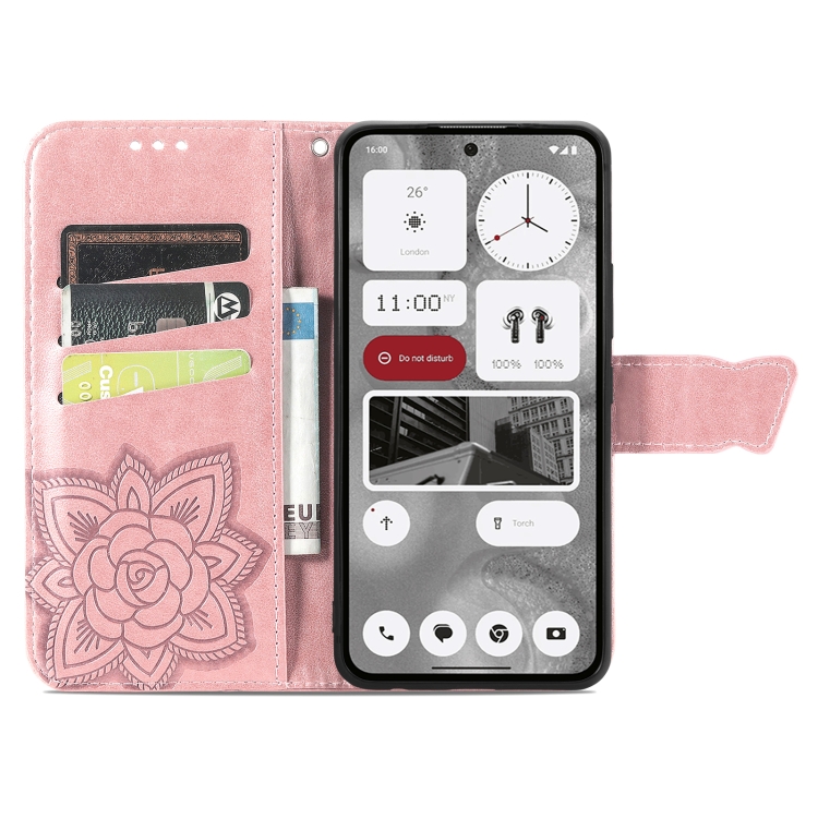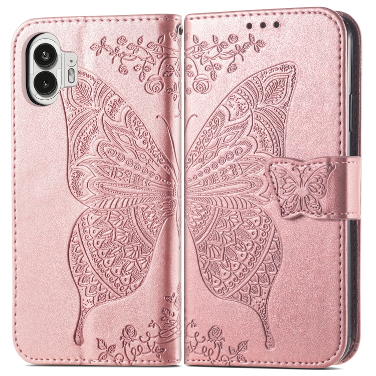 Estuche de Cuero For Nothing Phone 2 con Tapa Horizontal en Relieve Flor de Mariposa (Oro Rosa)
