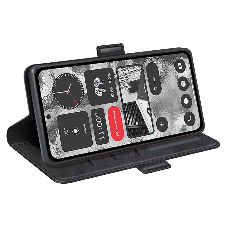 Funda para Nothing Phone 2 de Cuero con Tapa Horizontal y Hebilla Magnética Doble Cara (Negro)