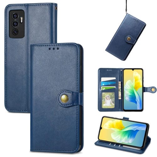 For Vivo S10E Caja de la Hebilla de Cuero de Color Sólido (Azul)
