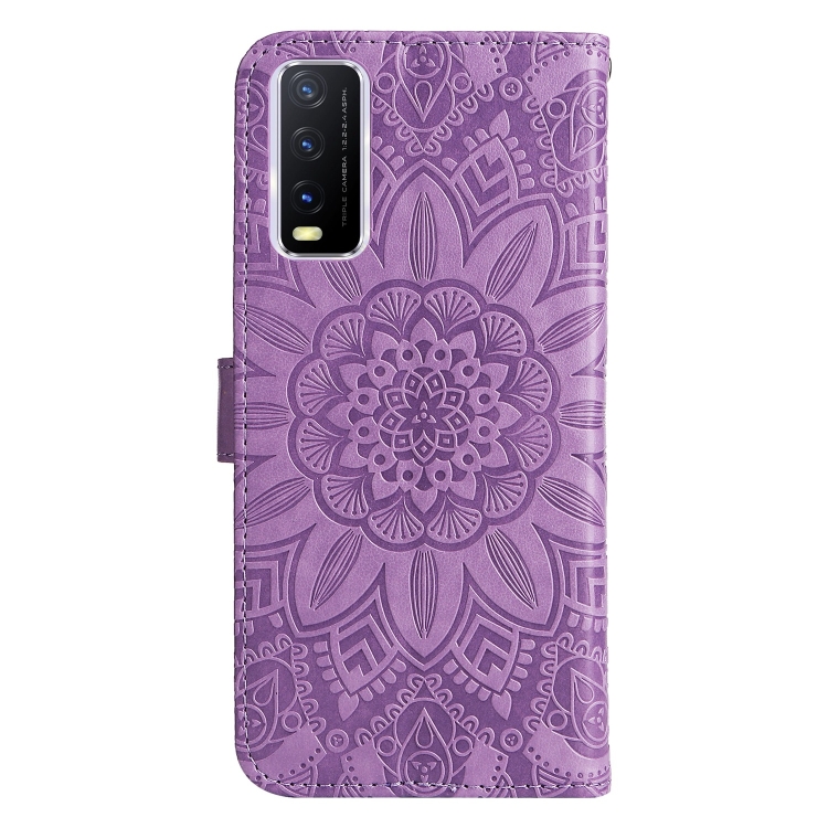 For Vivo Y20 Embossed Sunflower Leather Phone Case(Purple)