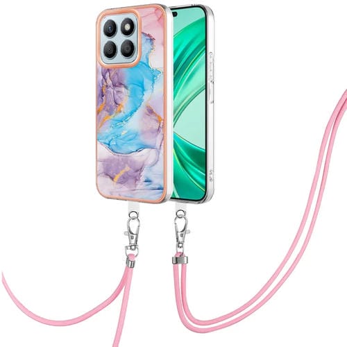 Funda TPU a Prueba de Golpes con Patrón Galvanoplastia y Cordón para Honor X8B (Mármol Azul)