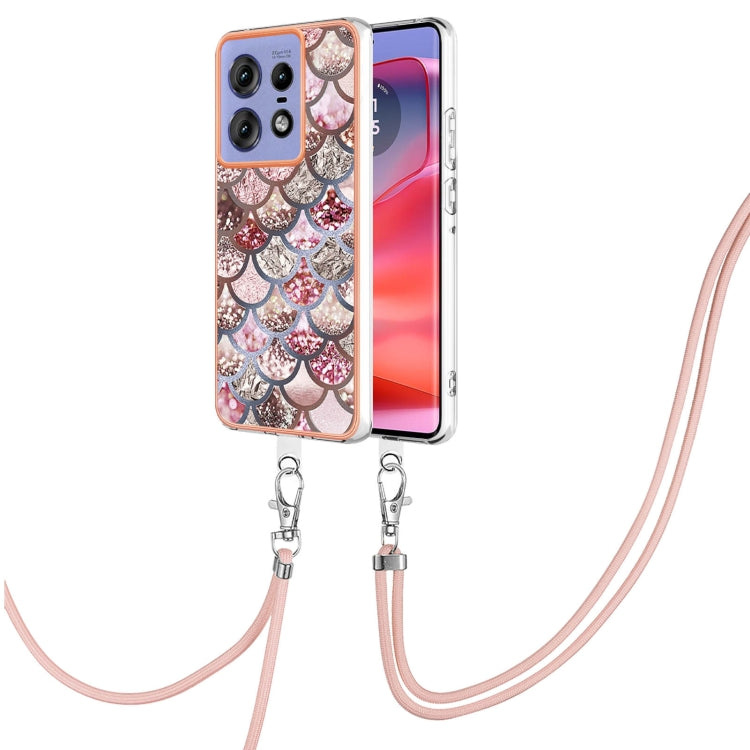 Funda a Prueba de Golpes TPU con Patrón Galvanoplastia Imd para Motorola Edge 50 Pro con Cordón (Escamas Rosas)
