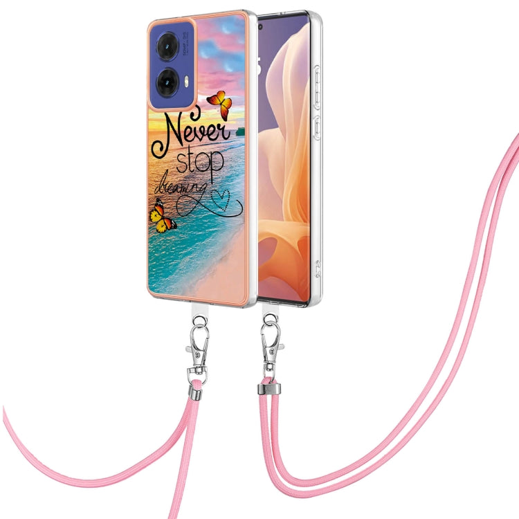 Funda TPU Motorola Moto G85 a Prueba de Golpes con Patrón Galvanoplastia y Cordón (Mariposa Persiguiendo Sueños)