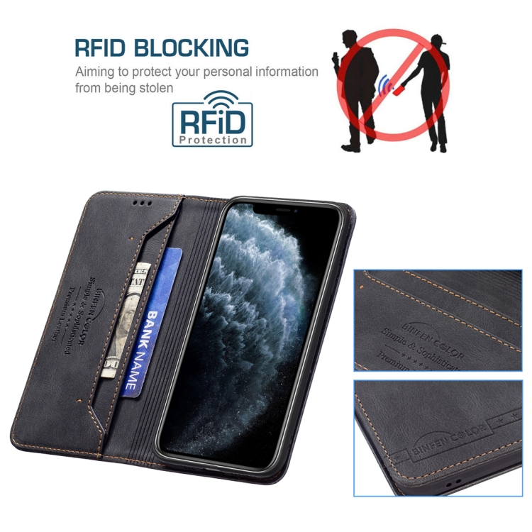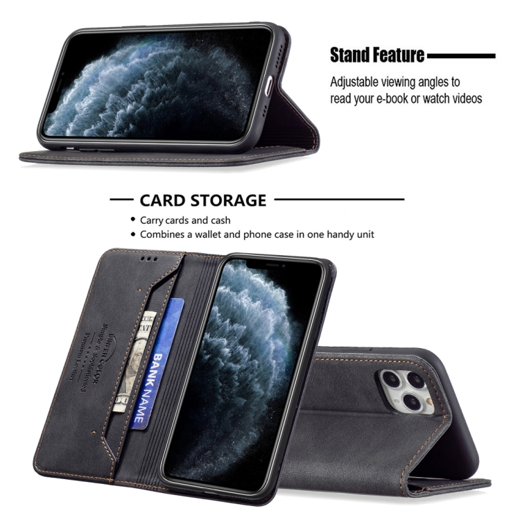 Funda de Cuero Antirrobo Bloqueo Rfid Magnético con Soporte y Billetera para iPhone 11 Pro (Negro)